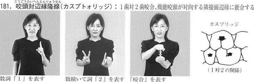 - 咬頭対窩、カスプトゥフォッサ 「歯の手話 歯科用語集6 (総集編)」 大阪府歯科技工士会