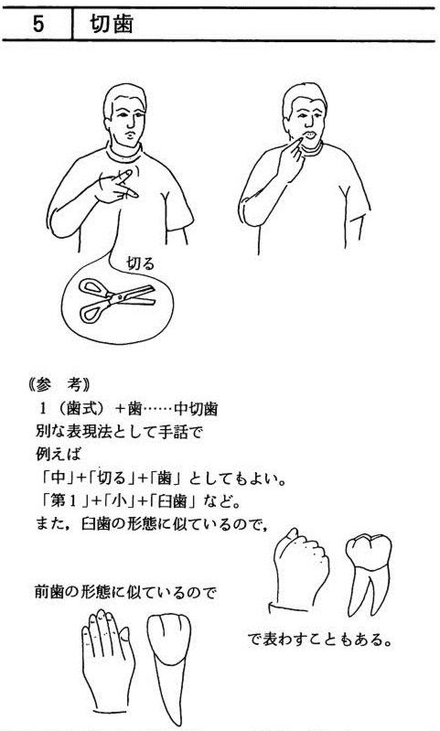 - 切歯 「歯科技工専門用語手話」 筑波大学附属聴覚特別支援学校