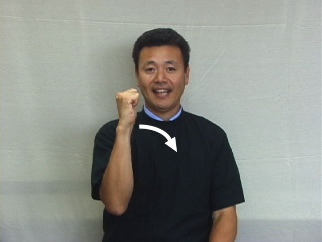1.歯に見立てた腕を倒す。
