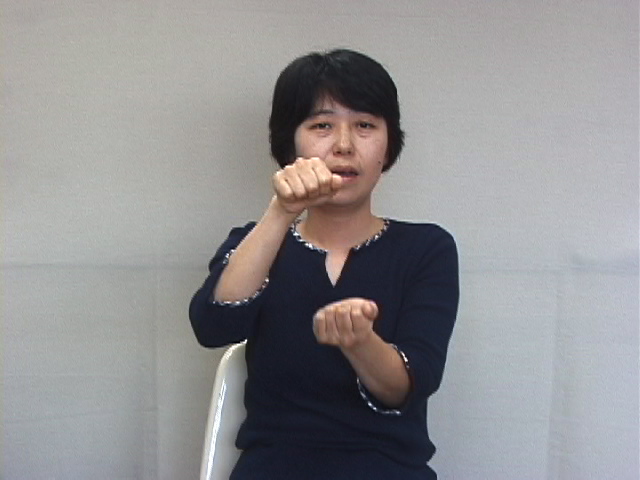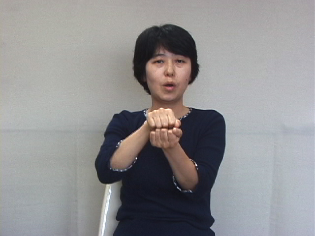 1.『咬む』:拳を合わせ、噛み合わせを表現する。