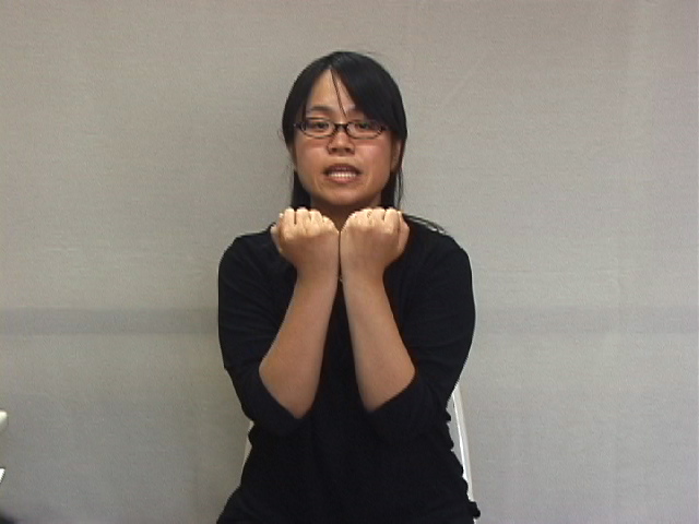 1.歯に見立てた両腕の拳を接触させる。