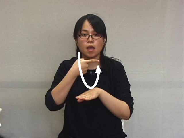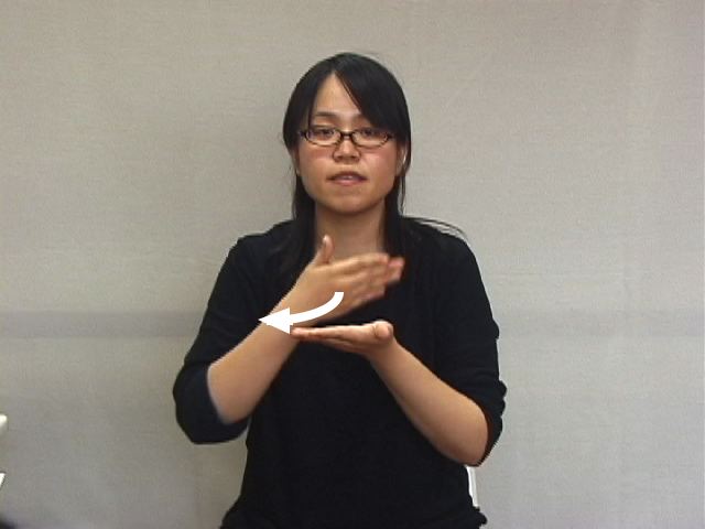 1.手の甲で手のひらの上を払う様子を表現する。